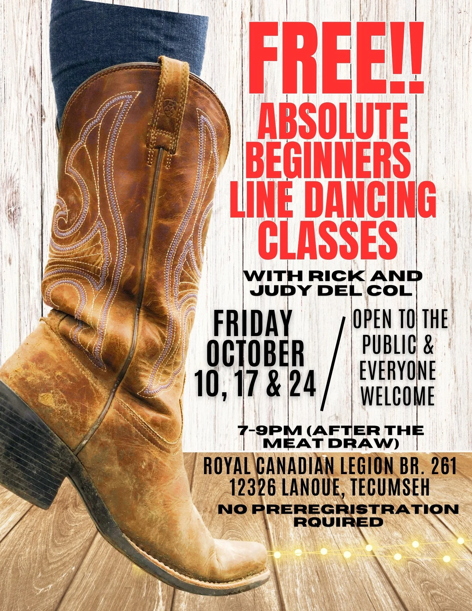 Ready to Dance Like Nobody’s Watching? Join Rick and Judy Del Col for FREE Absolute Beginners Line Dancing—three Friday nights of fun, laughter, and easy-to-learn moves. No experience? No problem. Just bring your good vibes and get ready to move!